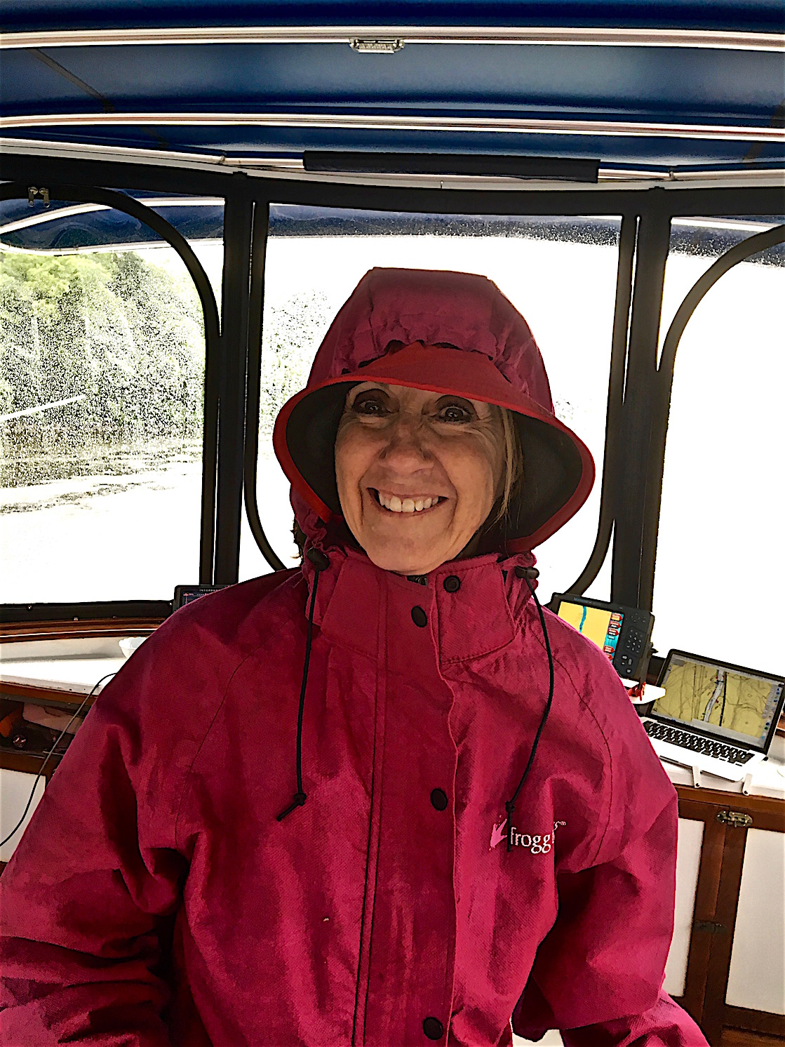 Kathy was a terrific crewmember. We hated so see her go! Athletic, strong, fit, she did anything we asked of her willingly and capably, including driving the boat. She was always ready for a hike or anything else we found to do and pitched in with food prep and cleanup – or just relaxing. She set the bar pretty high for anyone else who might join us on our Loop adventure later.
