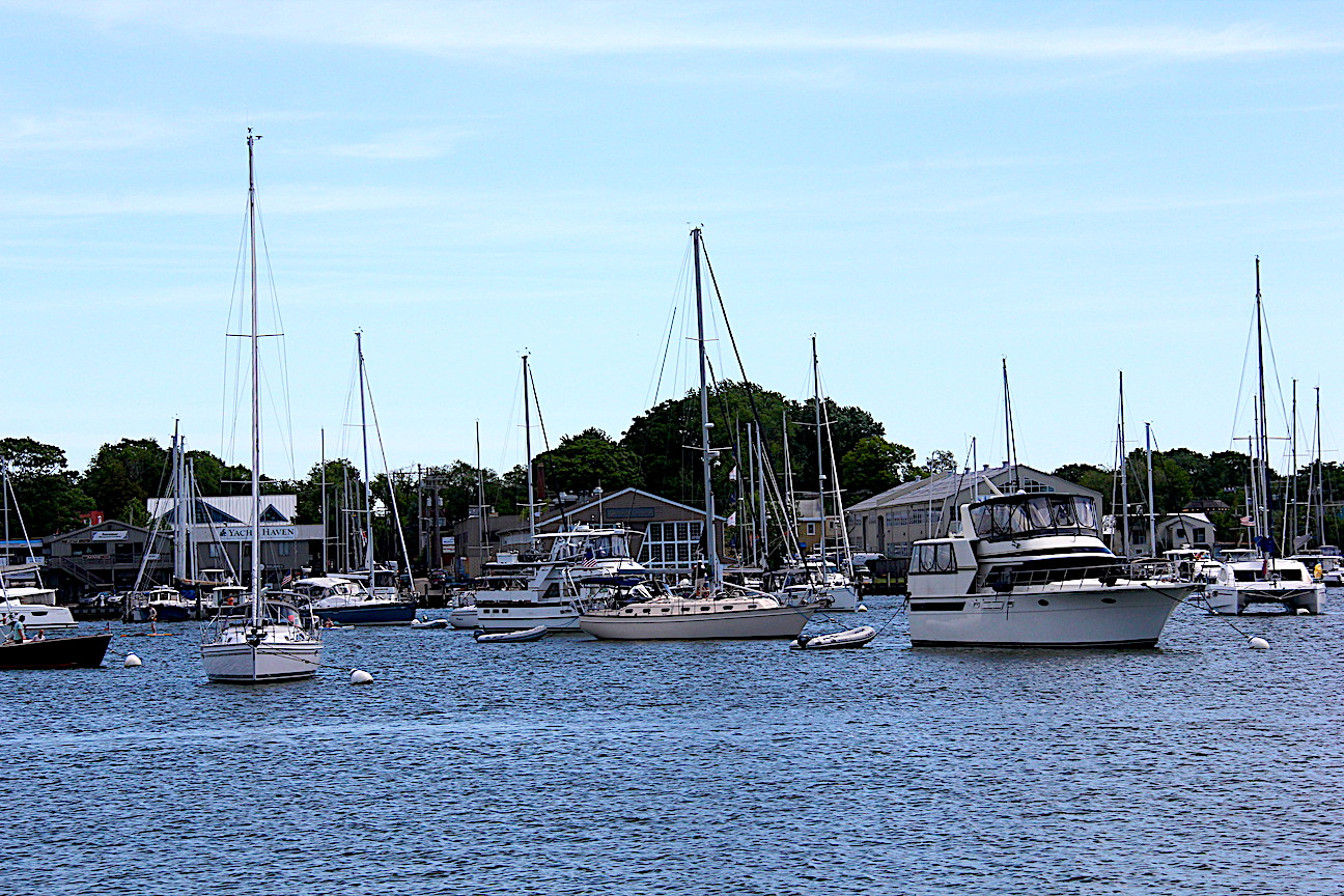 Shortly after returning to our boat, we heard, “Hey Gold Loopers.” It was Jim and Linda Mumper who lived in the area and who we met in TN on our first Loop! That Loop flag just draws boaters to you! While they were there visiting, the Wednesday night sailboat racers came right through the mooring field, weaving in and out of the boats. At times, it felt like they were going to hit us, but they always “came about” just in time. It was quite hectic.