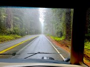 We camped that night in Brookings, OR at Harris Beach, a very nice campground within walking distance of a smaller beach than most we had visited in OR, picking a few blackberries on our return (which culminated in homemade ice cream). Rain began that night shortly after Tom grilled a wonderful dinner next to WOW, making for great sleeping that night. We were in the rain all day the next day as we crossed into CA, headed for an area where Tom had fished with his parents some 60 years prior. We drove around a little and found the spit where he fished before continuing to Redwoods NP and SP (the only NP which is also a state park). Though the weather was not conducive to any hiking amongst the redwoods, Paula got one of her prettiest patches yet for her fleece. We learned that redwoods are the tallest trees in the world (at 370’, they are taller than the Statue of Liberty) and are similar to sequoias, though sequoias are bigger in circumference. Redwoods can drink about 160 gallons of water per day but in the dry summer months can get up to 40% of their water from the iconic fog that blankets the area!