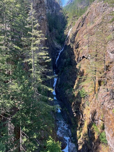 There are lots of hiking trails in North Cascade NP, and the Cascade Loop, a 440-mile road trip that circles the Cascade Mountains, is the main road through the park. We drove part of this loop, starting at Twisp, WA on the east side of North Cascades and drove through the park to Clinton on Whidbey Island on the west side. Unfortunately, WA was under a heat wave while we were there (like much of the rest of the west), but we still managed to do a 2-mile hike the day we arrived on the Thornton Trail to a water cascade, (begun by driving a 5-mile high-clearance vehicle road), and the following day, we kayaked Lake Diablo. We really appreciated that North Cascades is the dog-friendliest NP we have visited. Dogs (on leash) were allowed on many trails, and we took Whisper kayaking with us as well. Unfortunately, the only wildlife we saw was 1 deer. We enjoyed the park with its variety of lakes, streams, tall trees, waterfalls, and rivers.