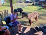 Our plans changed in the morning. We had hoped to spend a few more days at Flathead Lake (huge lake in northwest MT), but miscommunications with Paula’s Air Force nephew meant we needed to change plans to be able to see Paula’s brother and sister-in-law also visiting before they returned to NC. So, we packed up and drove the 4.5 hours to Spokane where he and his family had just moved into a house 2 days’ prior. It meant we had to leave some other things we desired to do in MT behind, but family is family. We enjoyed dinner with them that evening and were glad to have been invited and finally meet his 2 girls. Talia, age 4, went from being scared of Whisper to wanting Whisper to sit in her lap.