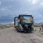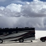 The next day, we arrived at Gallup, NM, for a specific reason. There was a Blue Beacon Truck Wash there, a business that had been recommended to us. It was always hard to find a car or truck wash tall enough for WOW – 13 feet high – and we wanted to wash and wax it before getting home to the AZ heat. Last year, we found that getting it cleaned inside and out and arriving home with only a bathroom and carpet to clean was wonderful, so we wanted to do it again. Nicely, the campground was only 2 miles from Blue Beacon. We gave ourselves 2 days to complete the job, and we did just that. The weather was perfect, with overcast skies helping to keep the temperature down at almost 6500 feet. It looked great, and it was rewarding.