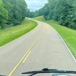Our first big “oh no” of the trip came when we started WOW that morning. We got a “check engine” light. We paused our departure while Tom researched what it might be. It was interesting that it came on just by turning the key, even before the engine started. Google and YouTube helped! Tom finally decided it was related to emissions, probably a non-critical issue, and we pulled out.