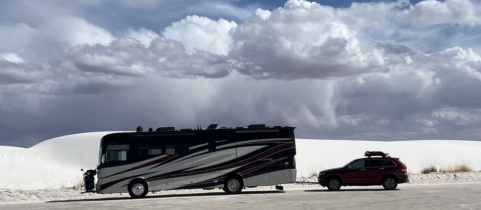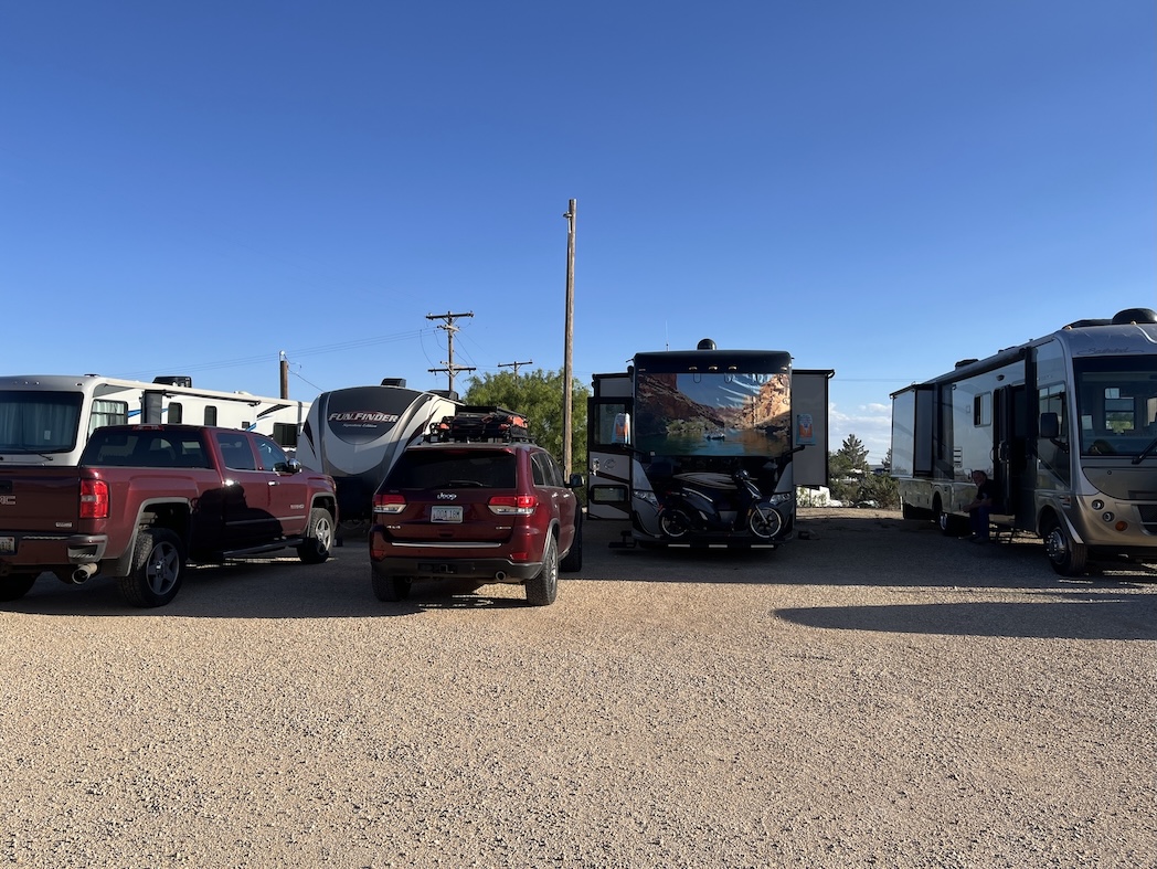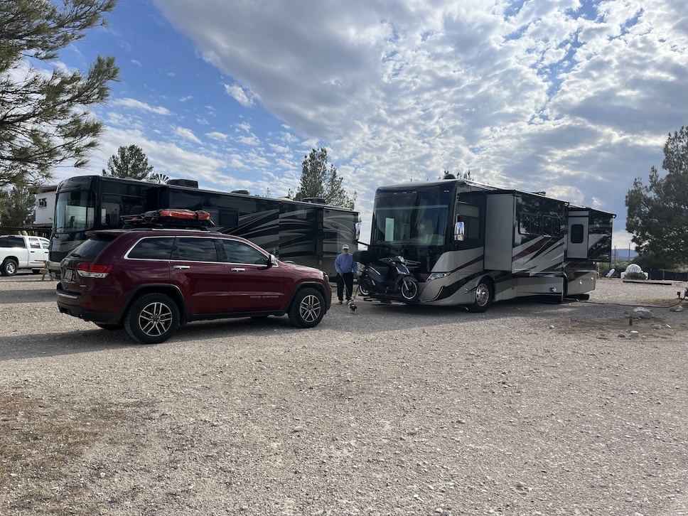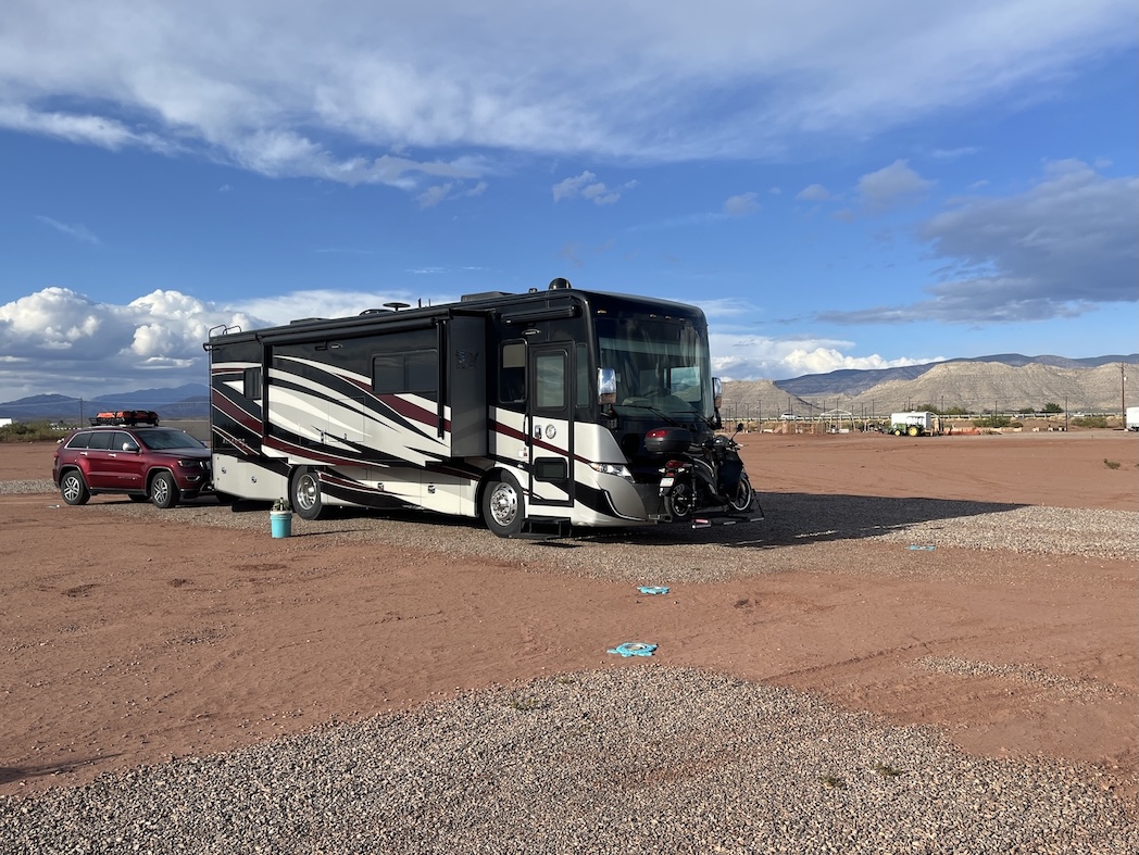 The next day, we arrived at Gallup, NM, for a specific reason. There was a Blue Beacon Truck Wash there, a business that had been recommended to us. It was always hard to find a car or truck wash tall enough for WOW – 13 feet high – and we wanted to wash and wax it before getting home to the AZ heat. Last year, we found that getting it cleaned inside and out and arriving home with only a bathroom and carpet to clean was wonderful, so we wanted to do it again. Nicely, the campground was only 2 miles from Blue Beacon. We gave ourselves 2 days to complete the job, and we did just that. The weather was perfect, with overcast skies helping to keep the temperature down at almost 6500 feet. It looked great, and it was rewarding.