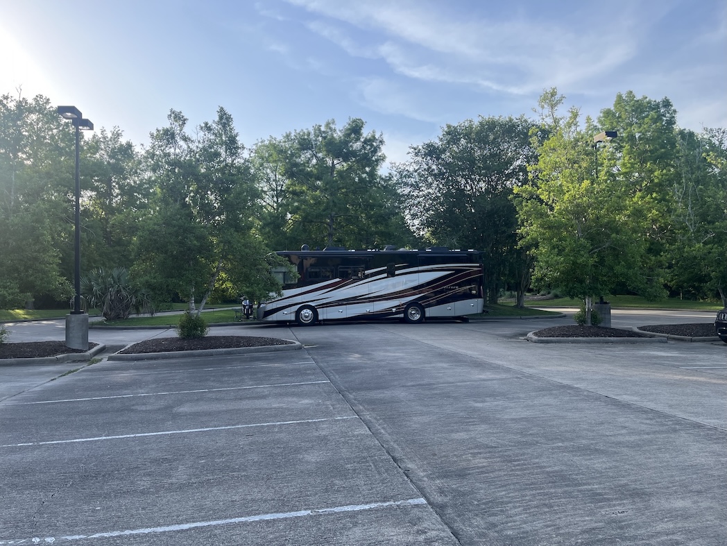 Our first big “oh no” of the trip came when we started WOW that morning. We got a “check engine” light. We paused our departure while Tom researched what it might be. It was interesting that it came on just by turning the key, even before the engine started. Google and YouTube helped! Tom finally decided it was related to emissions, probably a non-critical issue, and we pulled out.