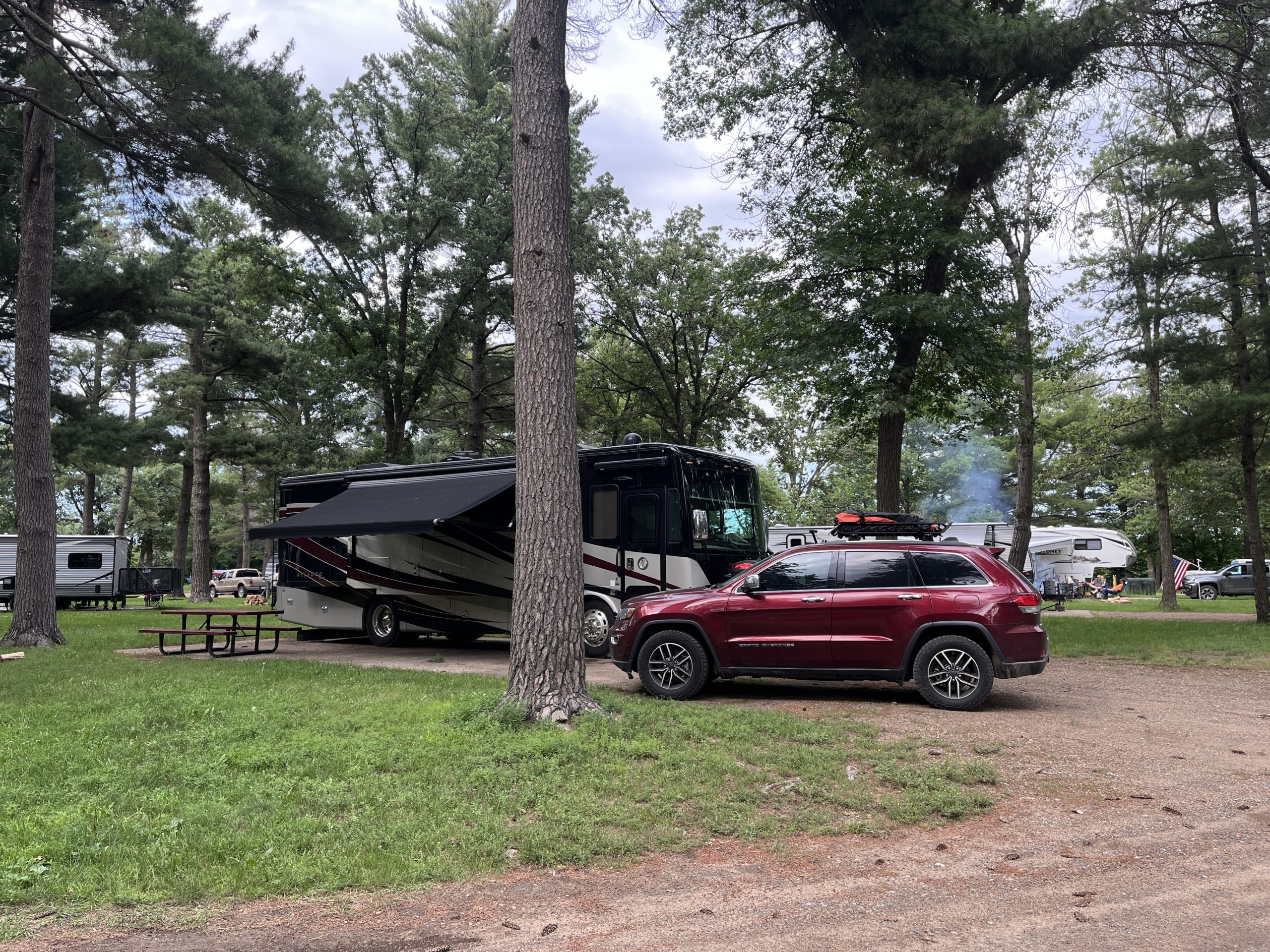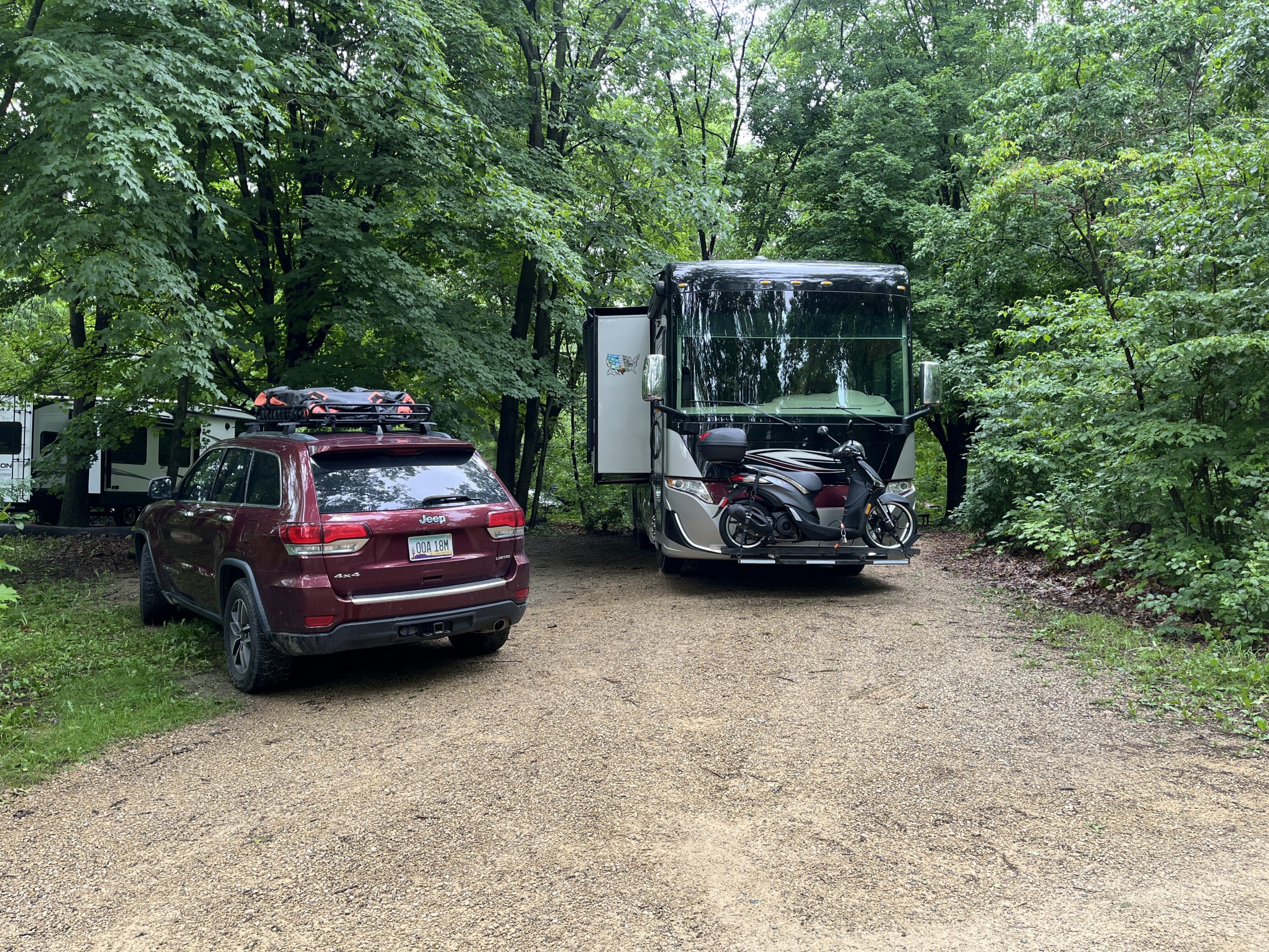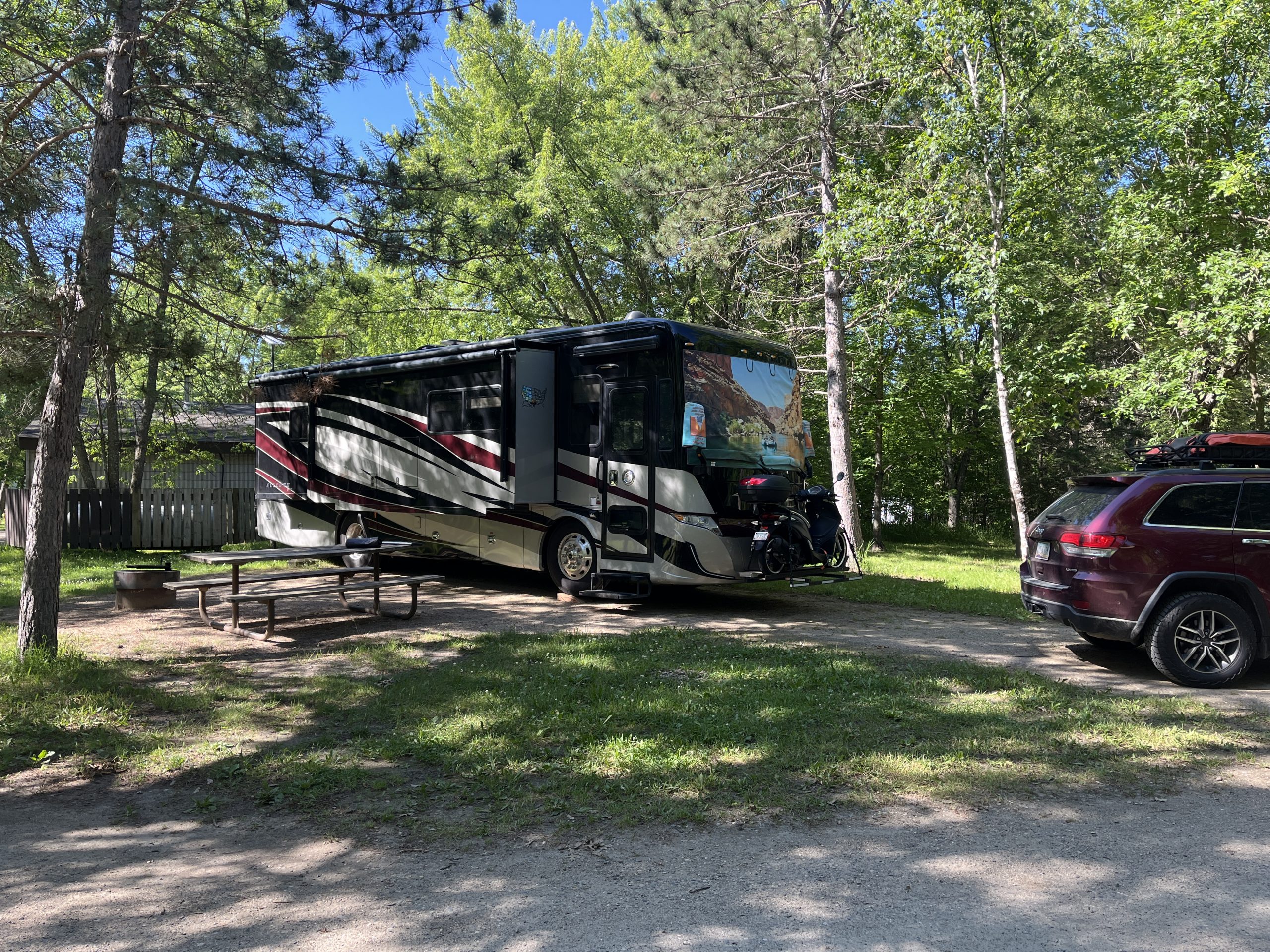 Here is a gallery of some of our 2025 campsites from the trip. As you can see, they ranged from beautiful lakeside sites to almost parking lots.
