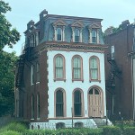 Afterward, we went to a few places in St. Louis before returning to WOW.  We had toured St. Louis years before when we came through here on our boat, so didn’t do the “normal” tourist stuff.  But we really enjoyed driving Forest Park, a park larger than Central Park in NYC.  Unfortunately, a few weeks prior, a tornado had come through and damaged many of the trees as well as blowing out some windows in The Jewel Box, a greenhouse we walked.  Look at the diameter of some of these downed trees.  Some of them are 6’ across! Then we drove to Lafayette Square to see the “Painted Ladies,” 150-year-old brick houses with their 3-story facades elaborately painted in bright colors.
