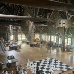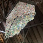 In the large room of the lodge was the Four Rivers Fabric Art, 4 large hangings that depicted the world of nature surrounding the park.  IL state law requires that public art be put into every state building with 0.5% of each building’s construction cost set aside to acquire it.  Go to this link to see everything the artist, M. Joan Lintault, designed into it and this link to see a close-up.  Paula really enjoyed seeing it.