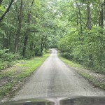 Leaving St. Louis, as we made our way north, we crossed the Missouri River and immediately afterward, the Mississippi River, into IL. We had to hang out for a few days at a campsite in Pere Marquette SP near Grafton, IL (no-wheres-ville) waiting for a package delivery. It was a nice park right alongside the Illinois River (though we couldn’t see it). It included a beautiful lodge, a nice visitors center, and a network of trails and roads through the hills. We had more days of rain, but it did give us time to get a blog out, give Whisper a bath and a trim, and relax.