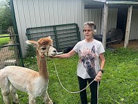 Paula was looking forward to the next day for 2 reasons. First, there was a yarn store near Minneapolis whose mailing list she is on that she wanted to visit. It was a nice store but, alas, didn’t have the specific yarn she was wanting. Disappointingly, no purchase and no new project to work on. Secondly, we were going to Alpenwood Alpacas Harvest Host for the evening, our first alpaca farm after 4 last summer. Lori only had 19 alpacas compared to 1,000 at Nancy Chapel’s Alpaca Country Estates in OR. Paula remains friends with Nancy to this day (and Lori knew of her superb alpaca herd).