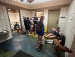 Heavy thunderstorms were forecast for the evening and at about 9:30 PM, there was a knock on WOW. Everyone in the campground (including pets) were to go to the shower house due to a tornado warning. 10 minutes later, about 30 people (+ 6 dogs) were crowded into the building with men’s and lady’s restrooms and 4 showers. The radar on Paula’s computer showed ominous storms and heavy rain and though we got lots of thunder and lightning (see the light show), we didn’t get as much rain as we expected. There we sat (or stood) for the next 45 minutes (everyone being very “ho-hum” about the drill as if they had done it many times) until we got the “all clear” sign and went back to our rigs with the caution that if there was another warning, we would be awakened for a repeat (even if it was in the middle of the night). We slept soundly through the rest of the storms.