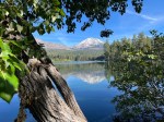 In the afternoon, we arrived at the campground which had just reopened that day. We were almost alone in the campground with only about 10% of the sites filled. After getting settled, Tom got the scooter off to go visit the museum at Manzanita Lake, then we took a hike around the lake. Very pretty and a perfect weather day.