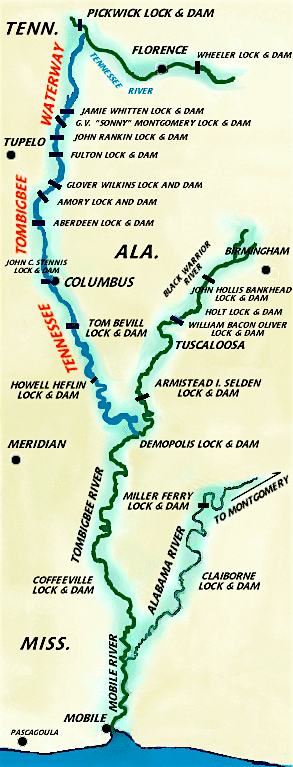 Leaving Demopolis, we were just 250 miles north of Mobile Bay where we would cross our wake. Our Loop was nearing completion!!! We had completed the Tenn-Tom Waterway and were starting down the Tombigbee River, which was widened by the Black Warrior River just before Demopolis. The Tombigbee River would lead us south until it was joined by the Alabama River, at which point it became the Mobile River, which flowed into Mobile Bay. The good news was that all we needed to do was follow the navigation markers and make sure were going downstream. For that, we used the time-tested method Tom used on the Colorado River for many years – throw a stick in the river and follow it.