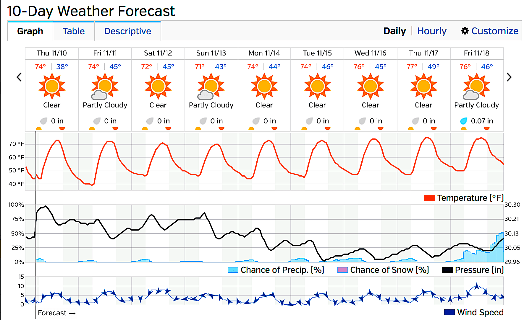The weather was amazing. How could you beat this weather in November? (Check out the forecast to the left.)